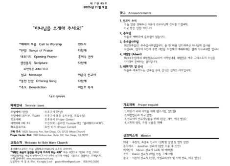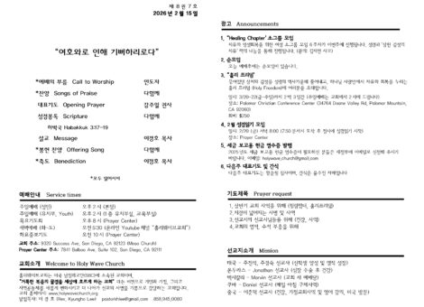 홀리웨이브 교회는, “거룩한 복음의 물결을 세상에 흐르게 하는 교회” 라는 비전으로, 하나님 나라의 복음으로 개인과 가정, 교회 그리고 지역공동체를 새롭게 변화시키고 더 나아가 선교의 사명을 기쁨으로 감당하는 교회입니다. 우리 교회는 미국 남침례교단(SBC)에 소속된 교회입니다.
